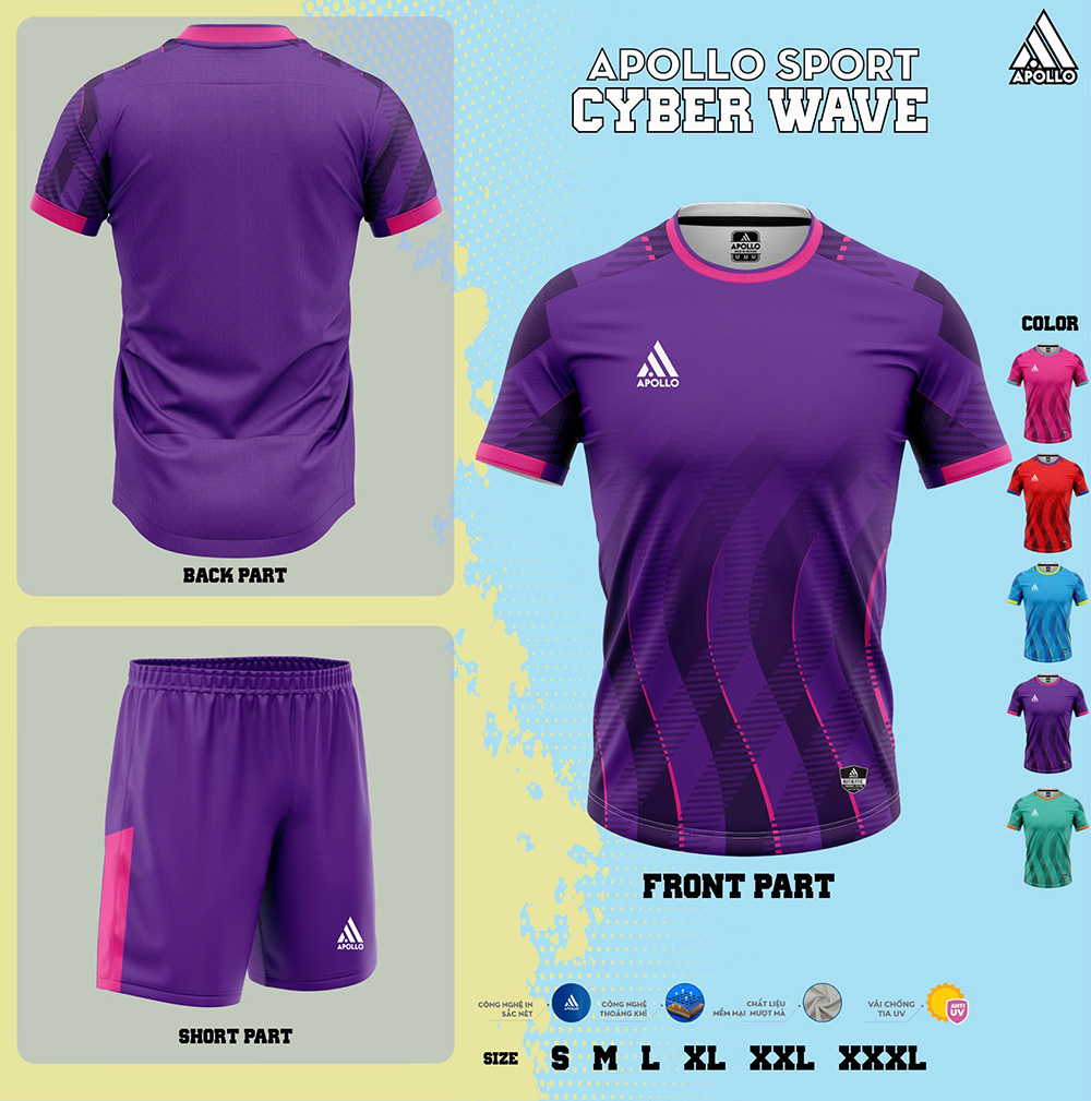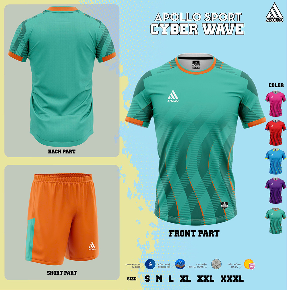 Cyber Wave là mẫu áo thể thao hỏa tốc thế hệ mới của Apollo Sport, được lấy cảm hứng từ những làn sóng năng lượng số và nhịp chuyển động không ngừng của thể thao hiện đại. Thiết kế mạnh mẽ, họa tiết chuyển động dứt khoát cùng chất liệu cao cấp giúp Cyber Wave trở thành lựa chọn lý tưởng cho luyện tập, thi đấu và các đội bóng phong trào yêu cầu cao về hiệu suất lẫn thẩm mỹ.