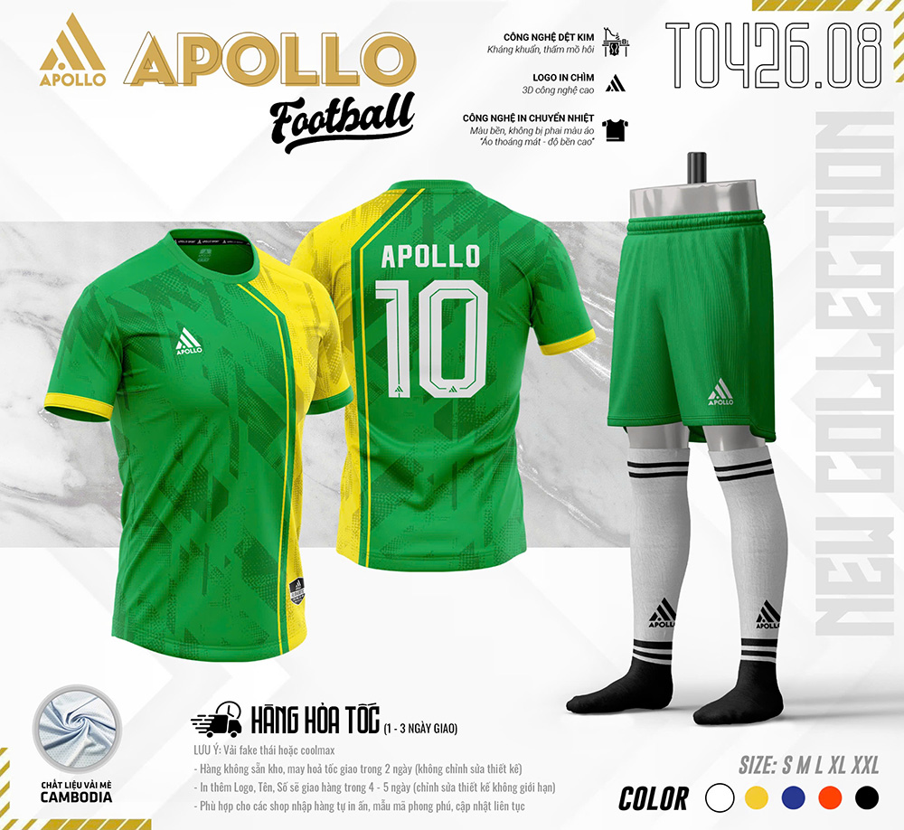Apollo Sport tự hào là đơn vị thiết kế và sản xuất đồng phục thể thao chuyên nghiệp, đã và đang đồng hành cùng hàng nghìn đội bóng trên khắp cả nước. Với triết lý lấy chất lượng – thẩm mỹ – hiệu suất thi đấu làm tiêu chuẩn cốt lõi, chúng tôi không ngừng hoàn thiện từng sản phẩm để mang đến trải nghiệm tốt nhất cho người mặc.