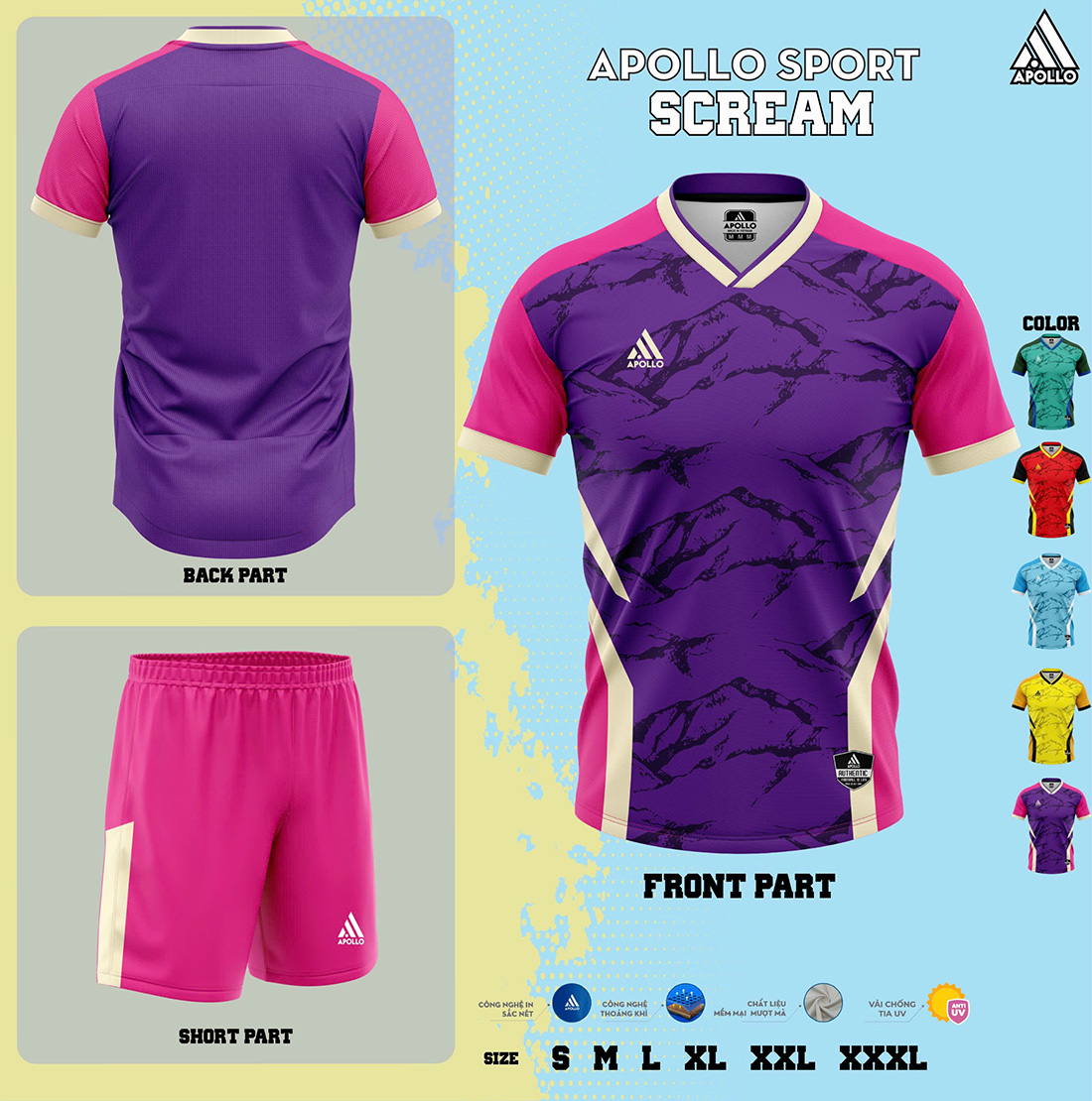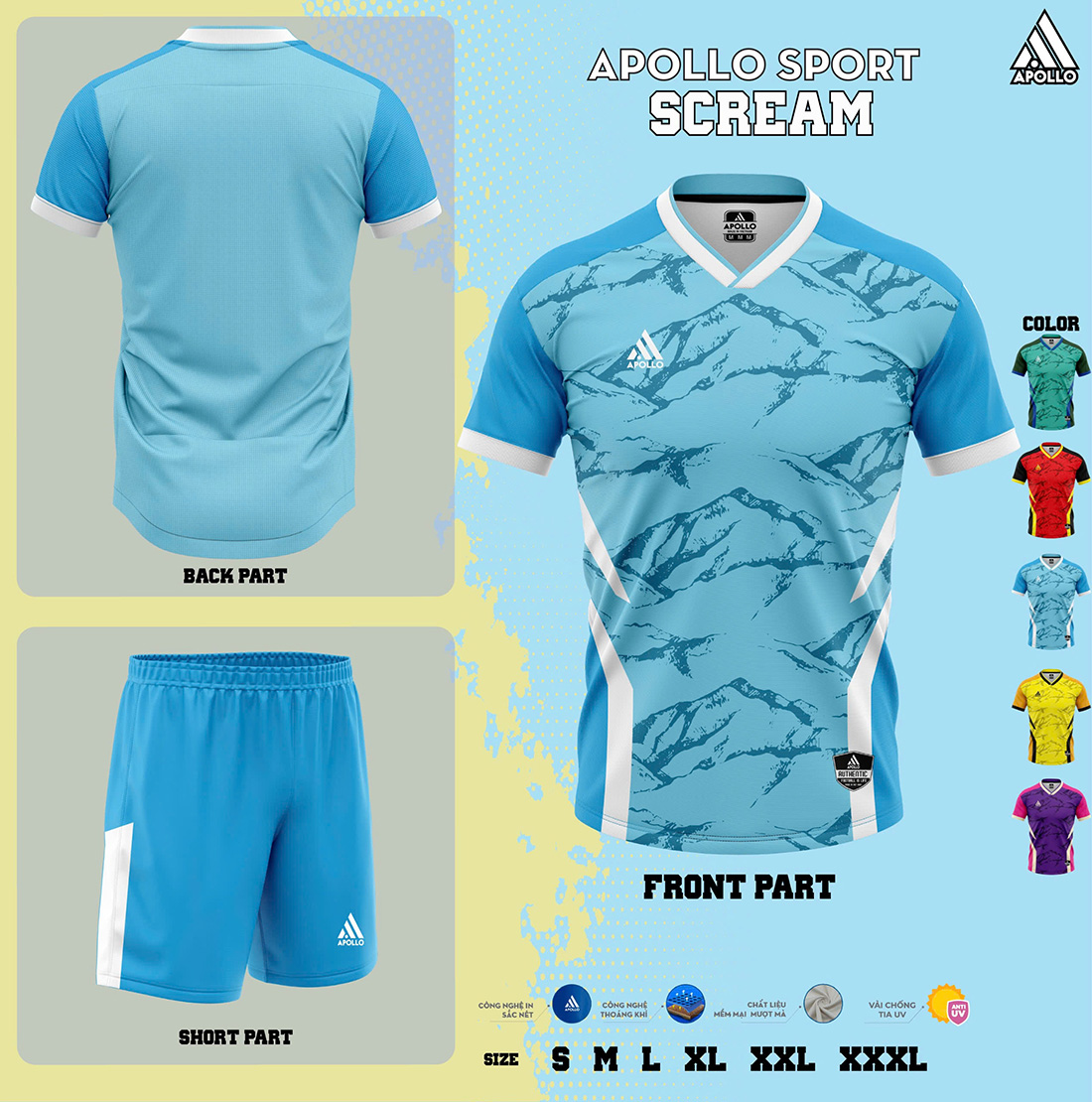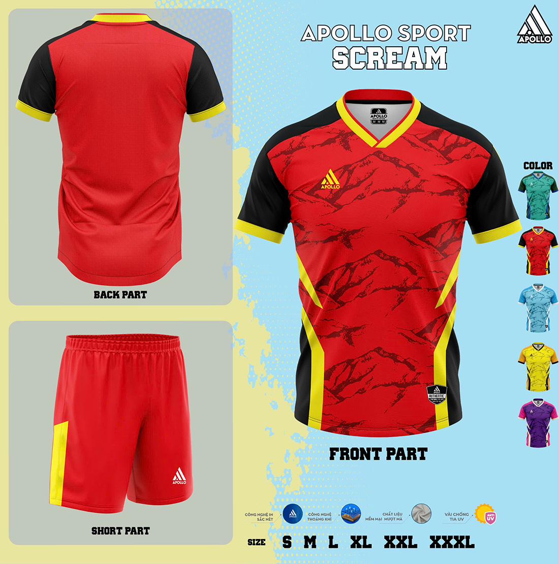 SCREAM sử dụng các dòng vải thể thao chuyên dụng của Apollo Sport, nổi bật với khả năng hỗ trợ vận động trong thời gian dài:
